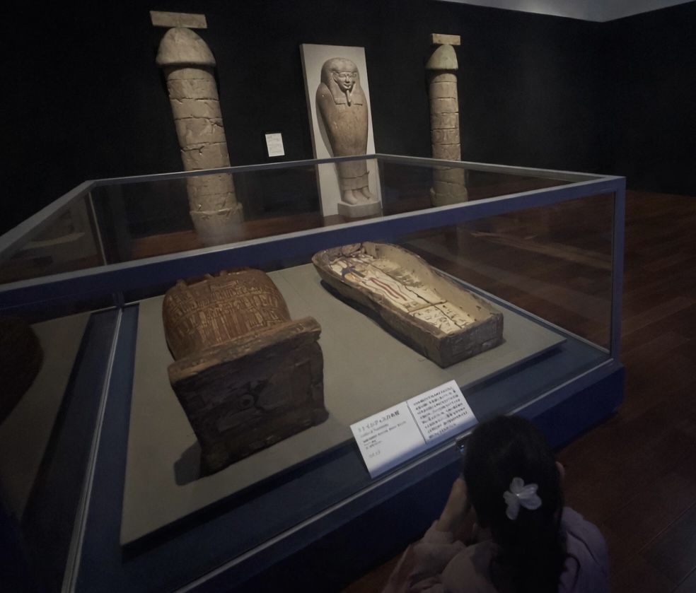娘はというと、ミイラにずっと釘付け。レリーフなどの展示には並びたがらないのに、ミイラや護符には自らすすんで並んでいて。